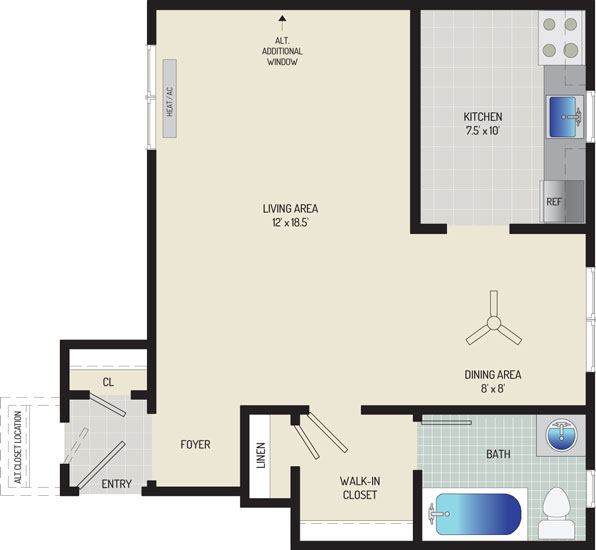 1 Bedroom + 1 Bath
